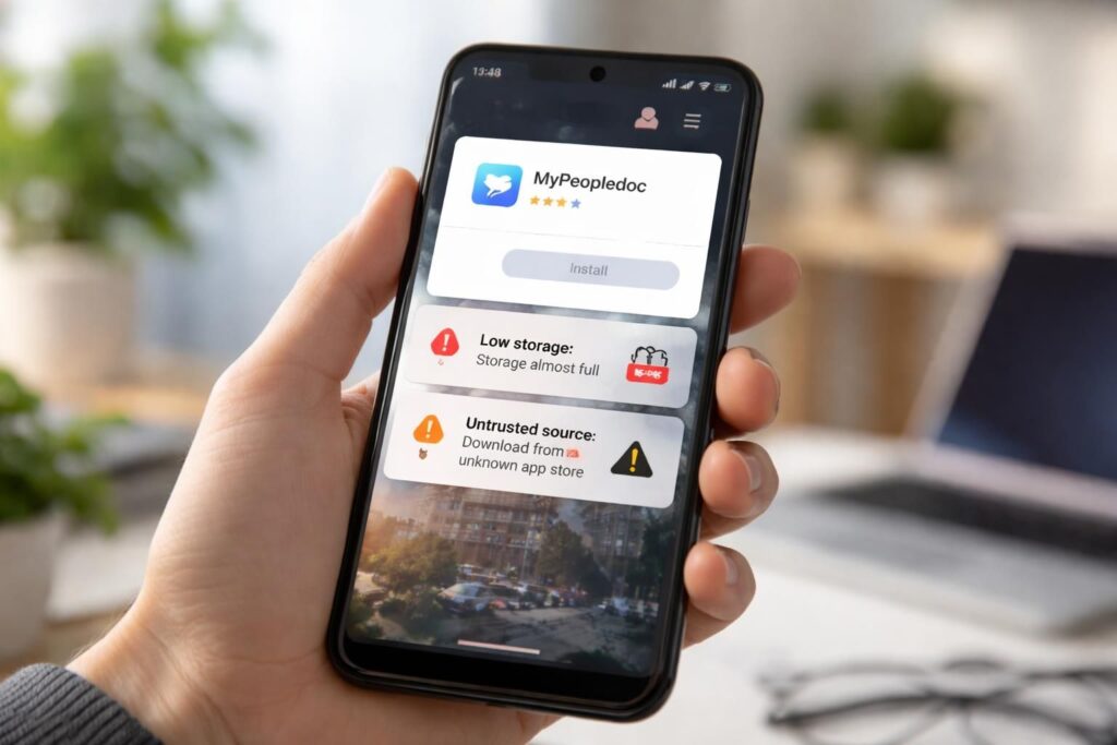 Il existe diverses erreurs qui peuvent survenir lors du téléchargement de l’application Mypeopledoc sur un appareil Android. La première erreur souvent rencontrée est liée à une connexion internet instable. Les utilisateurs doivent s’assurer de disposer d’une connexion Wi-Fi fiable ou, à défaut, d’une connexion mobile suffisante. Une mauvaise connexion peut entraîner des interruptions de téléchargement ou des fichiers corrompus, rendant l’installation impossible.